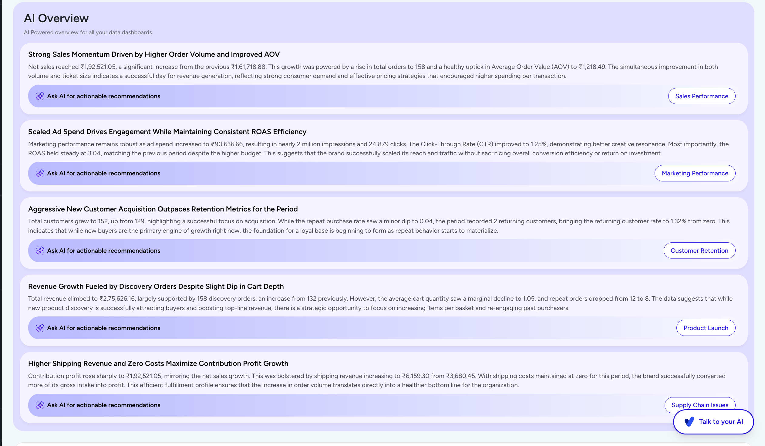A quick read of what’s happening across your business.