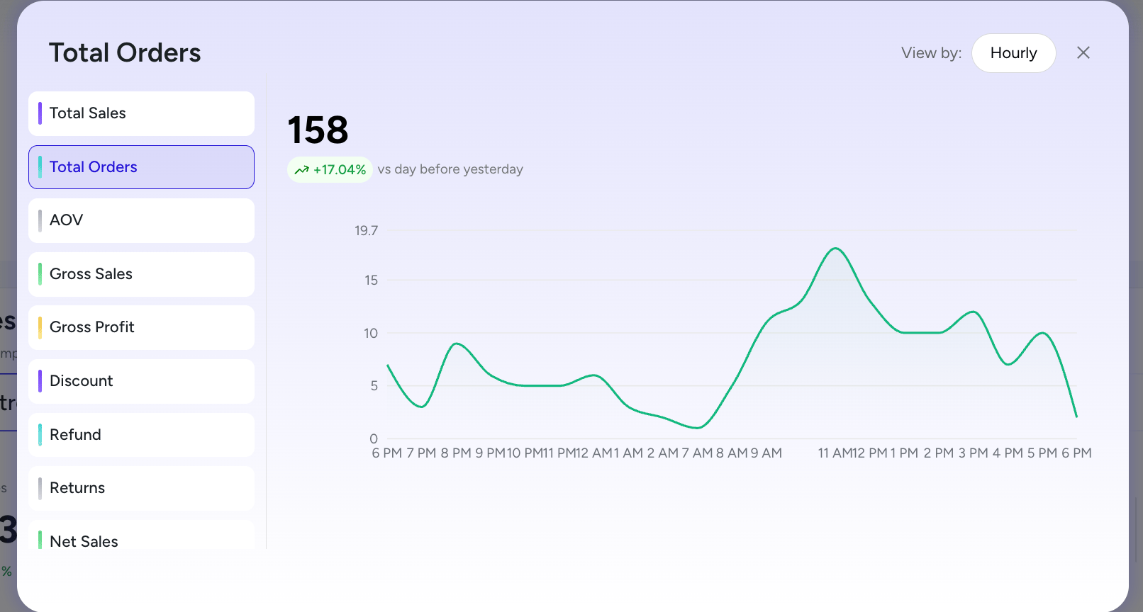 Switch between yesterday, this week, or this month and know exactly how you're doing.