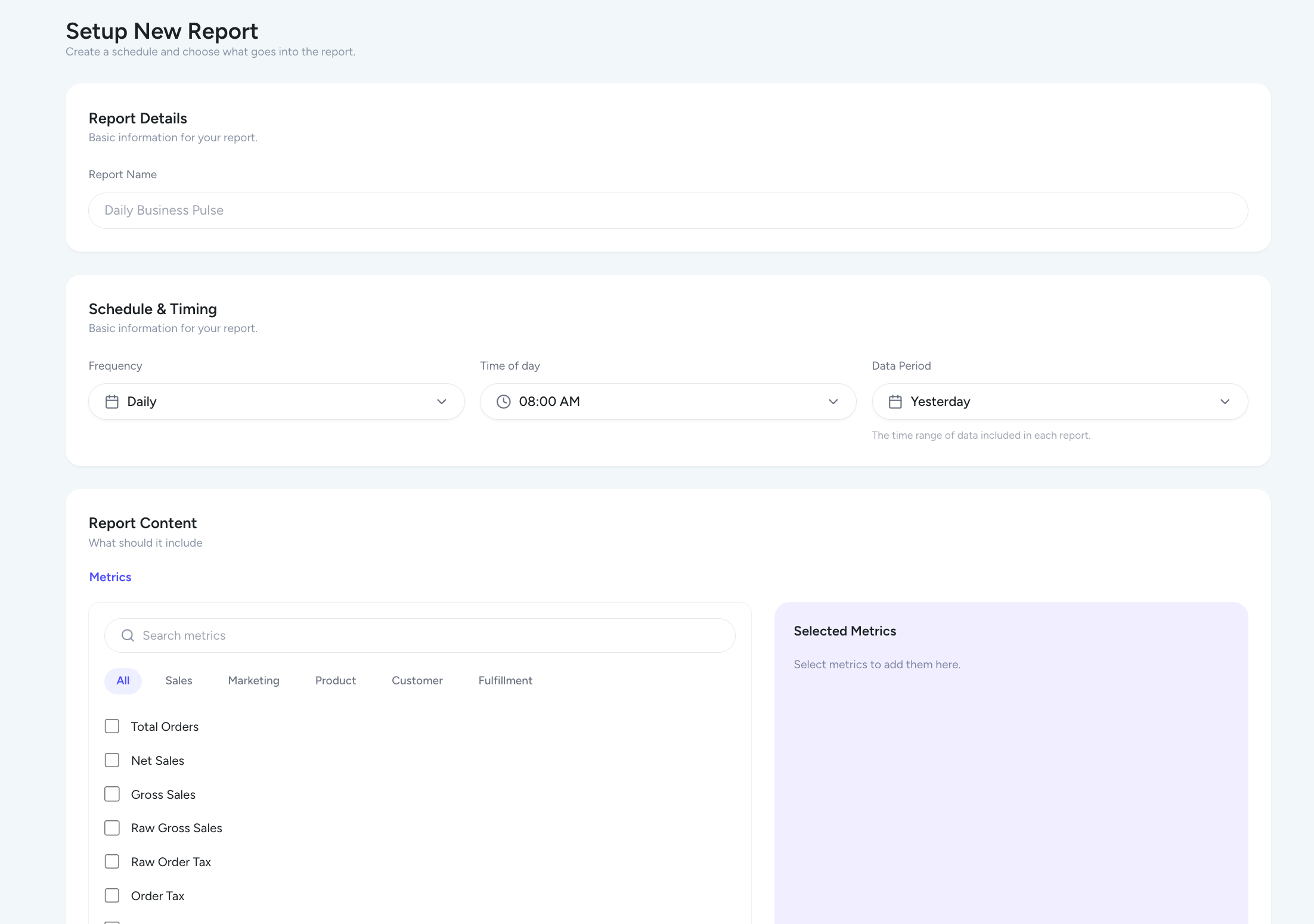 In the Reports Section, you can automate everything.