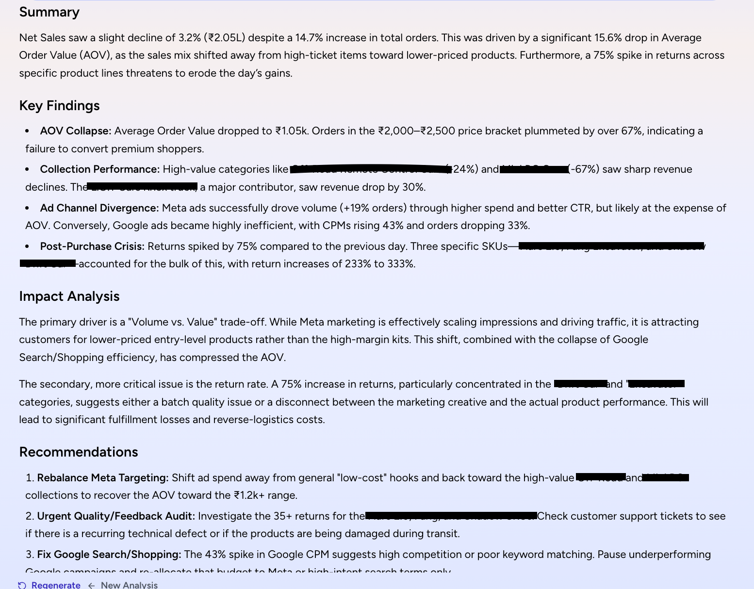 → Net revenue → product-level performance