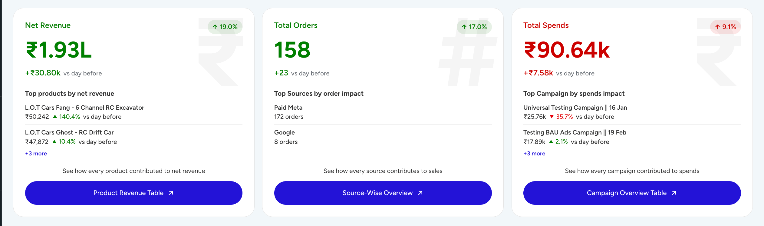 → Spends → campaign breakdown